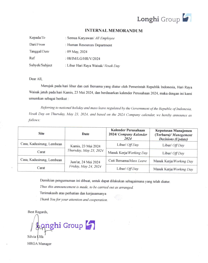 Working Calendar